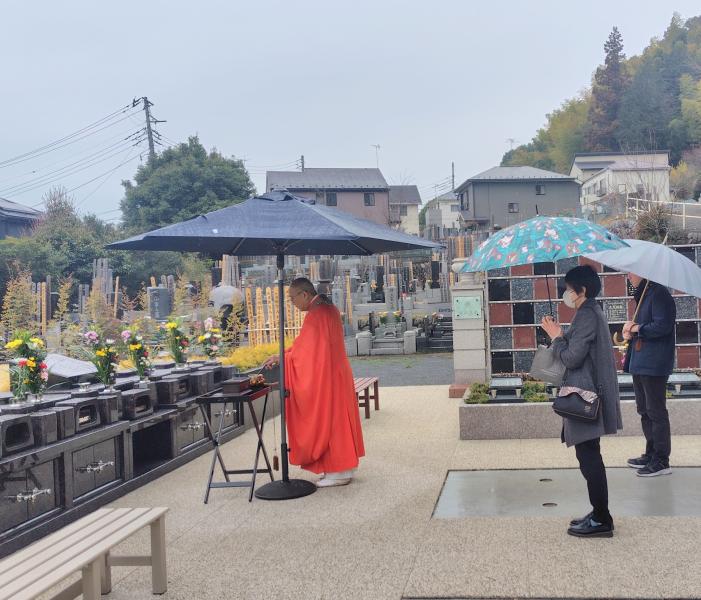 法話では住職の人柄も相まってユーモア溢れる和やかな場となり、その後は墓域でも読経して頂き充実した合同供養祭は終了しました。