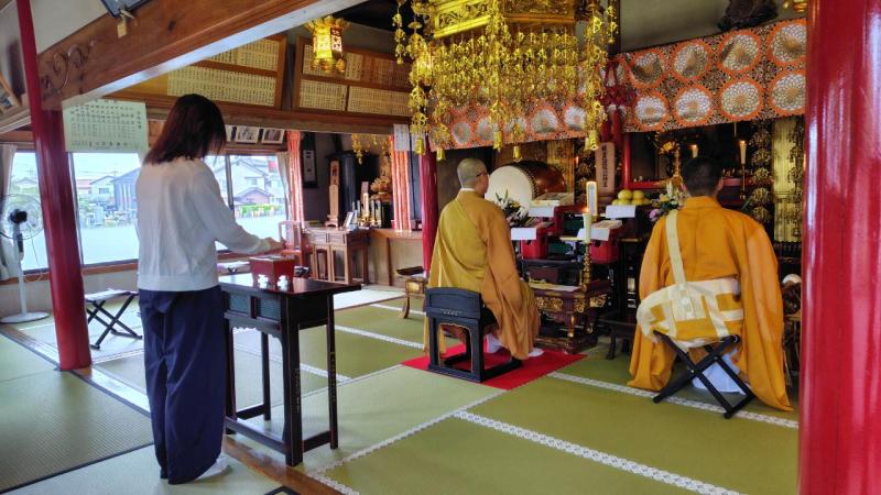 暑さ寒さも彼岸まで…という言葉の通り、少しずつ秋の気配を感じられる陽気の中、東陽寺本堂にて住職並びに副住職により読経をあげていただきました。
