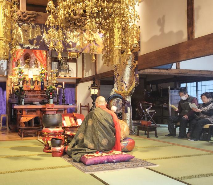 威厳ある本堂での読経は30分に及び、住職の力強く澄んだ声は高い天井をさらに押し上げるかのようで、身が引き締まり凛とした空気に包まれました。